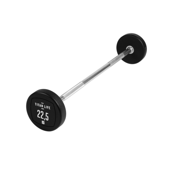 TITAN LIFE PRO Barbell är en viktstång med fasta vikter som kan användas för att träna både biceps och triceps. Viktenheten är fastsvetsad på skivstången och täckt med polyuretan. Den passar utmärkt alla typer av träningslokaler. Fördelen med en fast viktstång är att du inte behöver lägga tid på att byta viktskivor.
